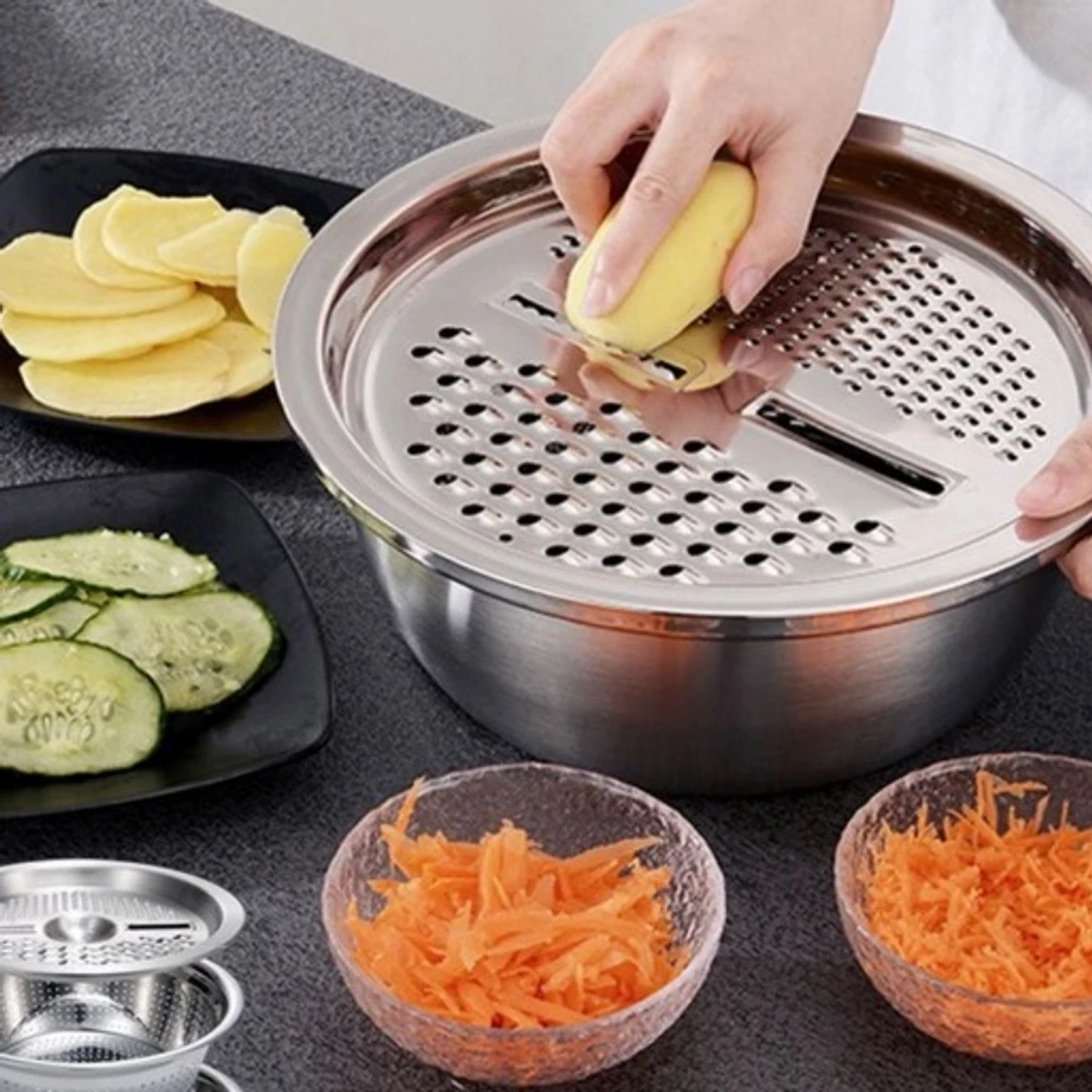 3 IN 1 VEGETABLE CUTTER WITH DRAIN BASKET।