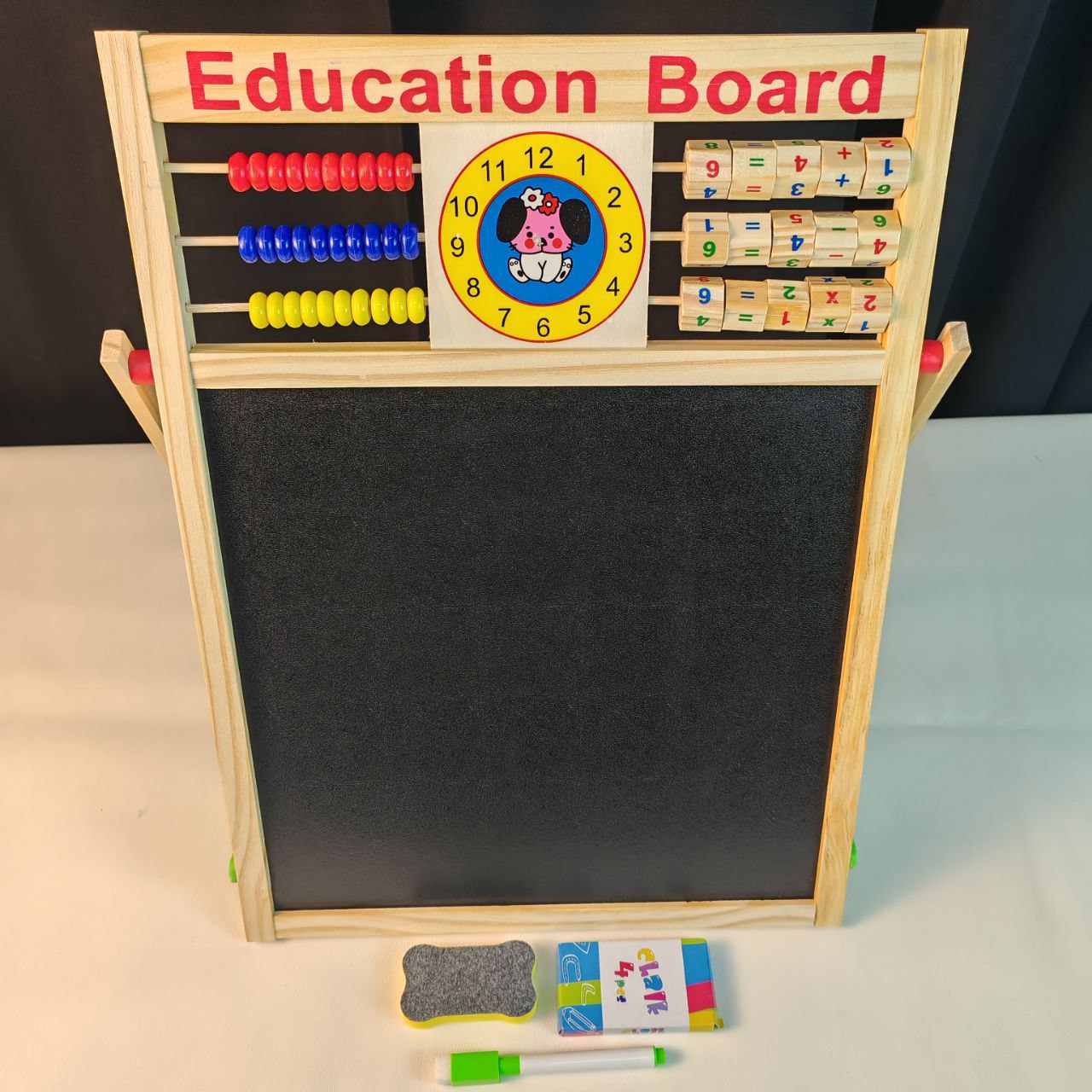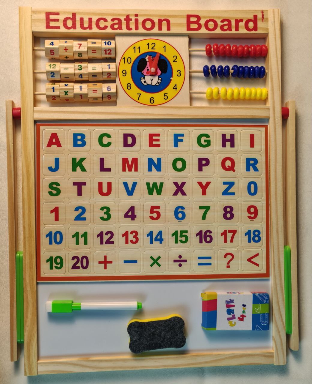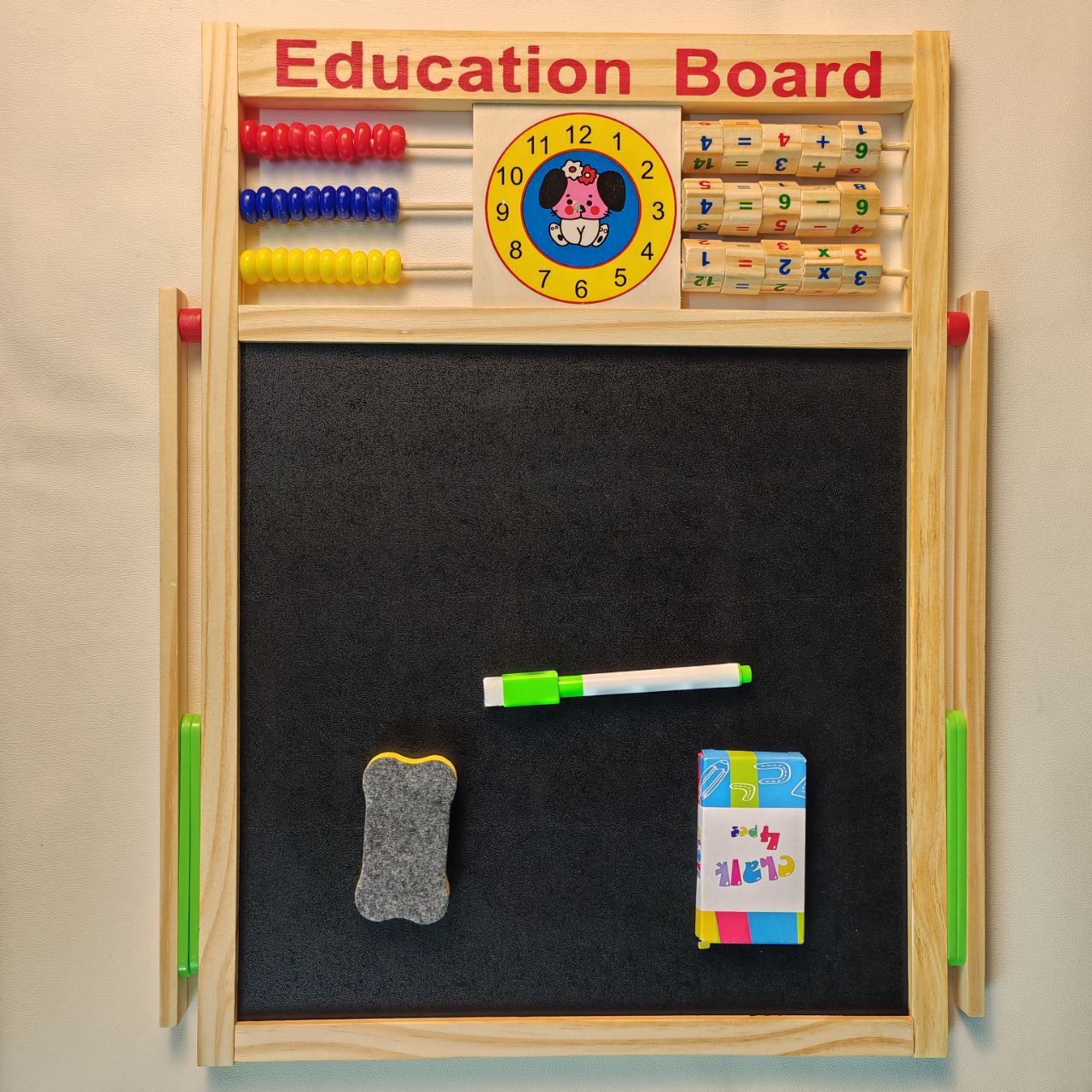 এক বোর্ডেই হোয়াইটবোর্ড, ব্ল্যাকবোর্ড, ম্যাগনেটিক অক্ষর-সংখ্যা, রঙিন অ্যাবাকাস আর ঘড়ি—সবই একসাথে!