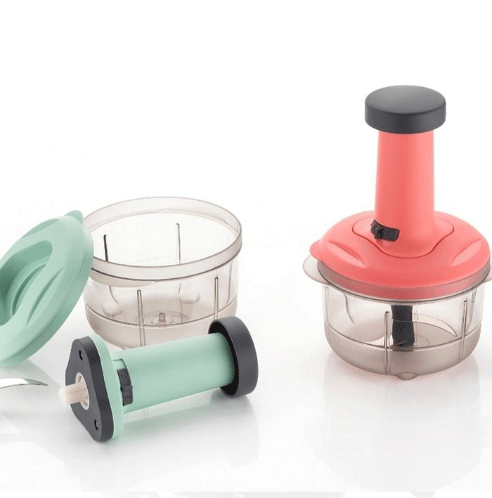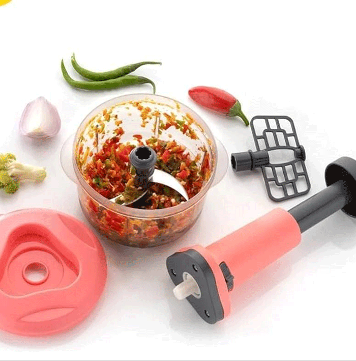 এই চপারটি রান্নাঘরের জন্য খুবই ব্যবহারিক ও সময় বাঁচানো একটি যন্ত্র। এতে উপরের দিকে একটি পুশ হ্যান্ডেল রয়েছে, যা চাপ দিলে ভেতরের ধারালো ব্লেড ঘুরে সবজি কেটে ফেলে। বিদ্যুৎ ছাড়াই এটি ব্যবহার করা যায়, তাই নিরাপদ ও সুবিধাজনক।