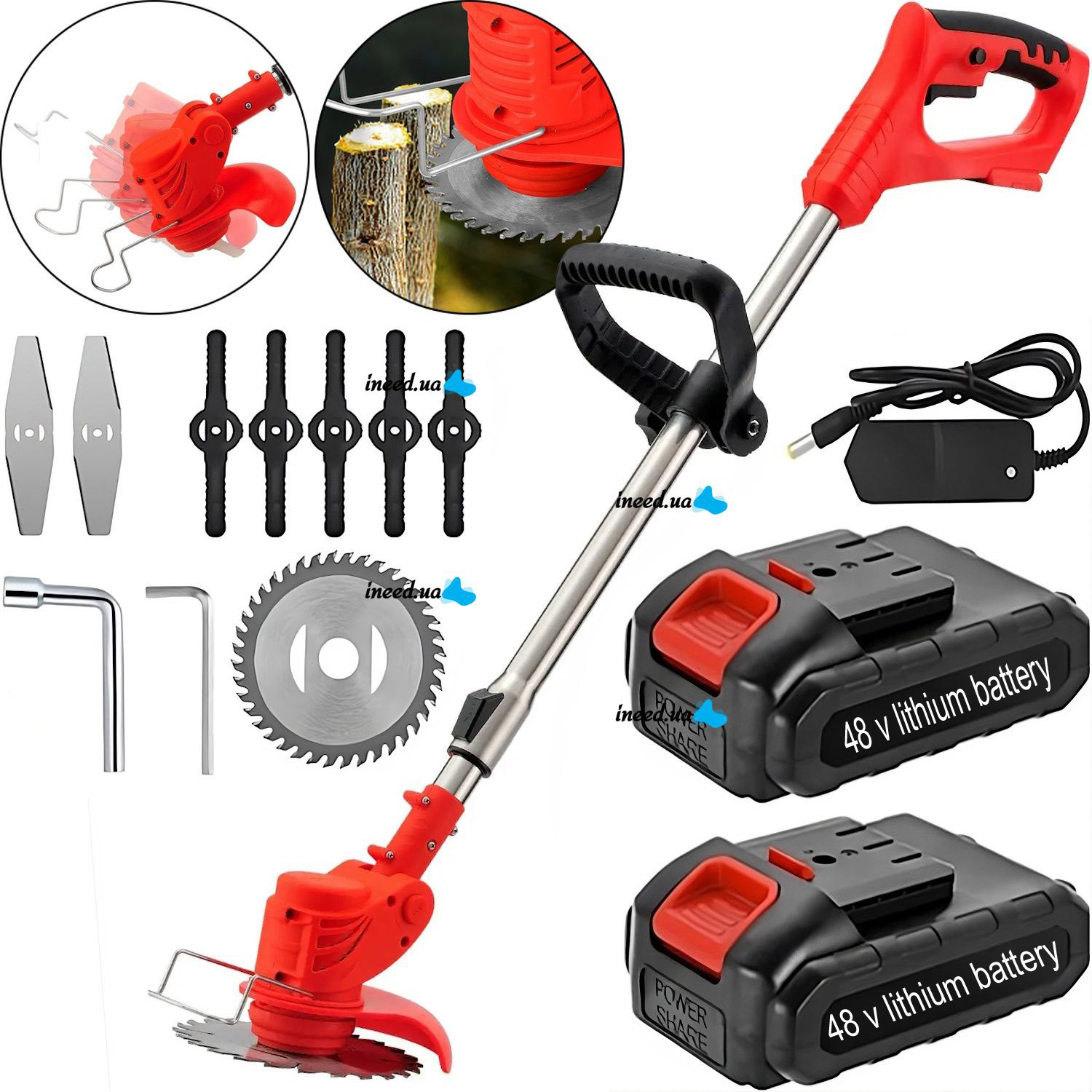 এই মেশিনটি বিভিন্ন ধরনের ঘাস ও আগাছা কাটার জন্য একাধিক ব্লেড সহ আছে
